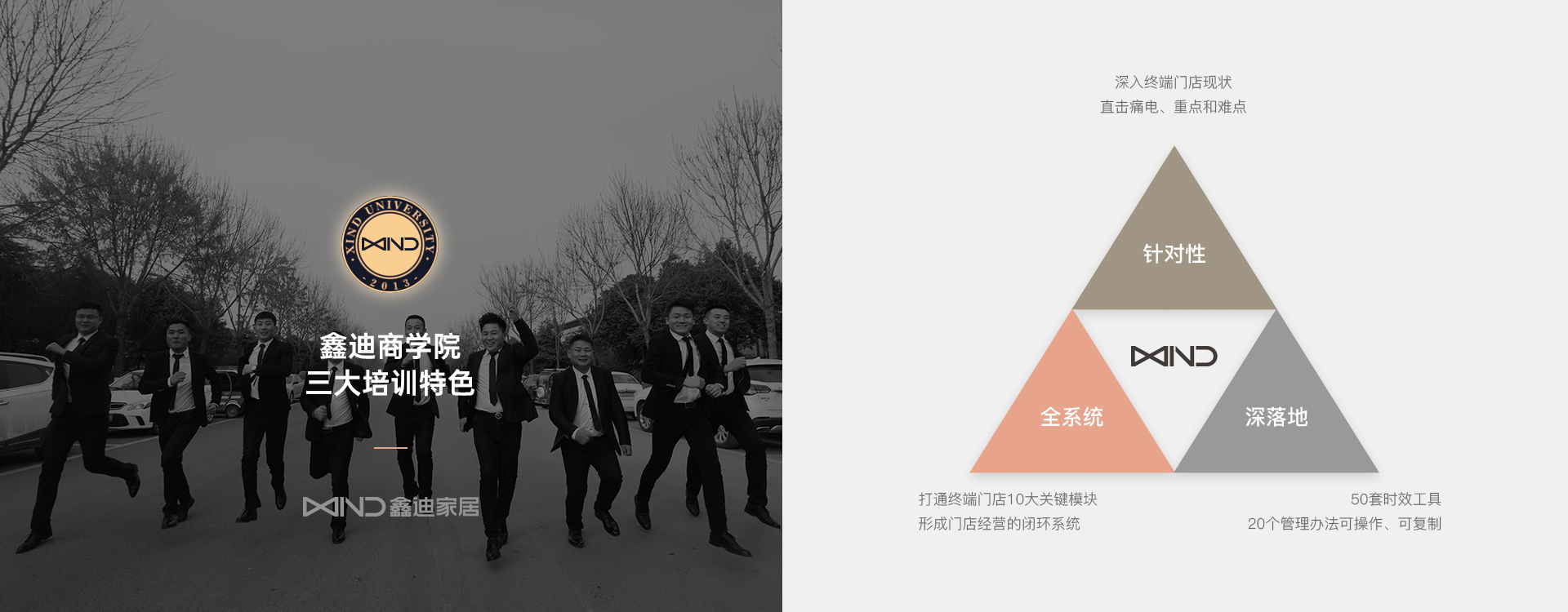 鑫迪商學院作為公司智慧輸出中心,為經銷商和內部團隊提供線上、線下、駐店等多種培訓,平均每年舉